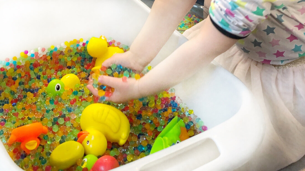 Zum Schluss dürfen die Kinder bei der letzten Station in den Water-Beads des Regenbogenmeeres nach dem Regenbogenschatz suchen. Damit sind sie meistens eine ganze Weile beschäftigt. Gerne werden auch schon gefundene Schätze wieder in die Perlenflut geworfen und das Spiel beginnt von vorne. Wenn sich alle Kinder ausgiebig mit den Wasserperlen beschäftigt haben, ist die Schatzsuche zu Ende. Zum Dank für die tolle Unterstützung bei der Regenbogen-Schatzsuche bekommen die Kinder nun eine Box mit kleinen Belohnungen / Mitgebseln.