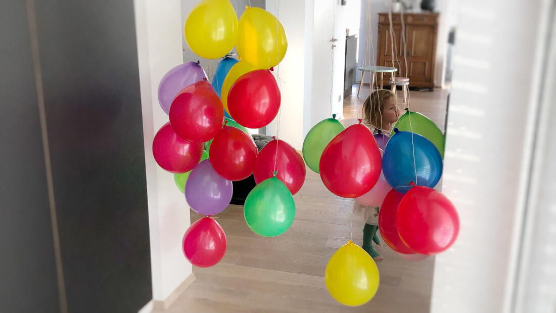 - Vorhang aus Luftballons an Schnüren (=Zaubertüre) vorbereiten. Am besten 1 Tag vorher… dauert eine Weile