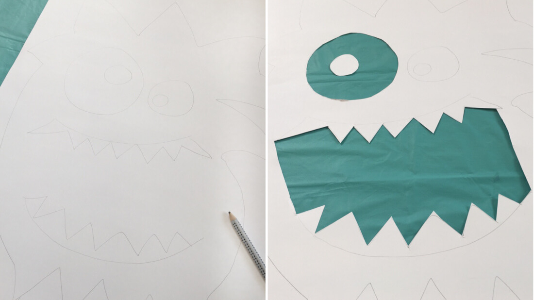 Monsterumrisse mit Bleistift vorzeichnen und dann den Mund und ein Auge ausschneiden