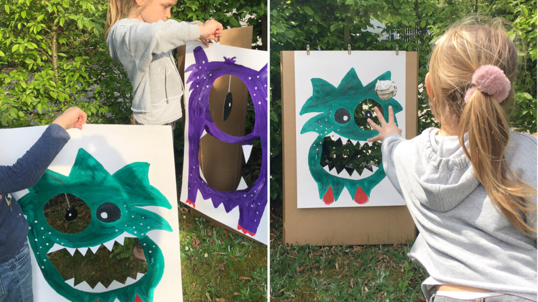 Denn unser Monsterparty Wurfspiel kann sogar mit einer coolen Bastelaktion kombiniert werden: Zuerst malen die Kinder unterschiedliche Monster für die Wurfwand und dann heißt es: Auf die Monster. Und fertig. Looooooos.