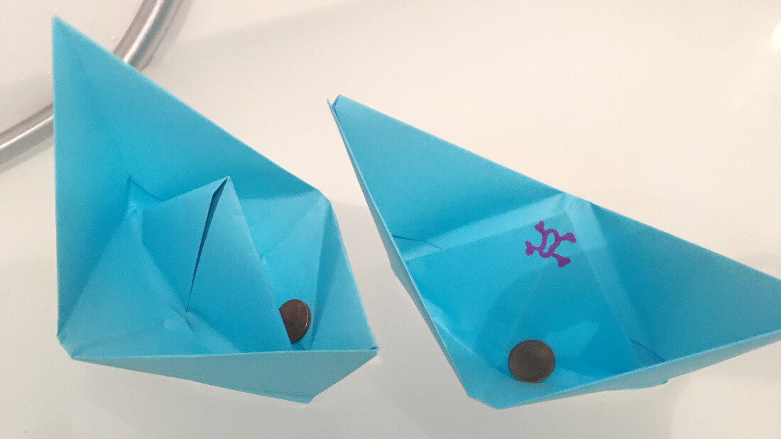 Falte aus den Papierbögen jeweils kleine Schiffe. Wenn du nicht weißt, wie das geht, schau mal HIER.