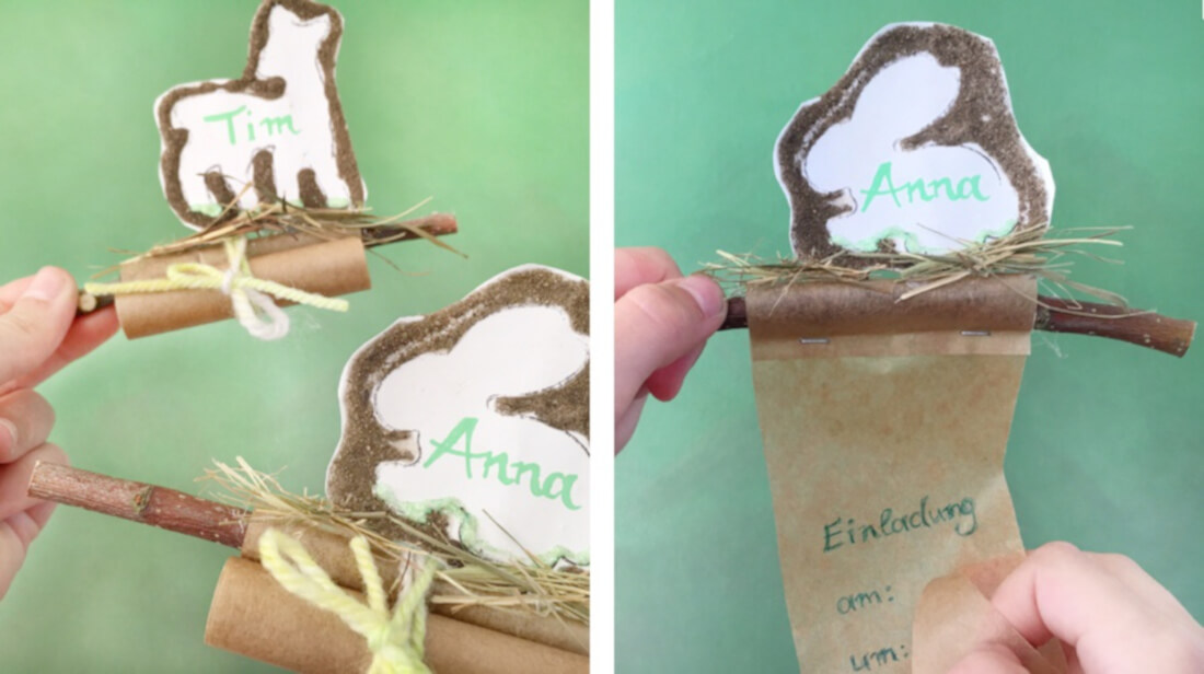 Die Waldtiere-Einladung ist wirklich schnell gebastelt und kostet auch kaum etwas, da du die Äste, den Sand und das Heu/Gras draußen sammeln kannst. Wieder mal eine tolle Upcycling-Idee von unserer Lindarella.