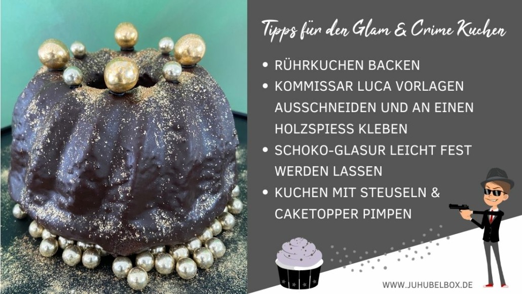 Kurzanleitung für unseren Glam & Crime Kuchen