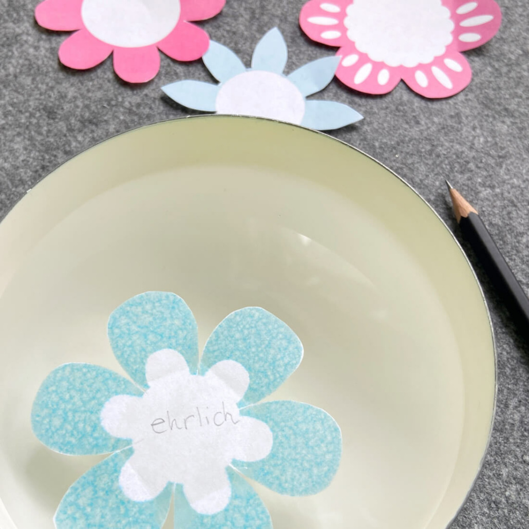 Außerdem bastelt ihr 3 Tasseln. Wie das geht, findet ihr in dem Video, das wir weiter oben verlinkt haben.