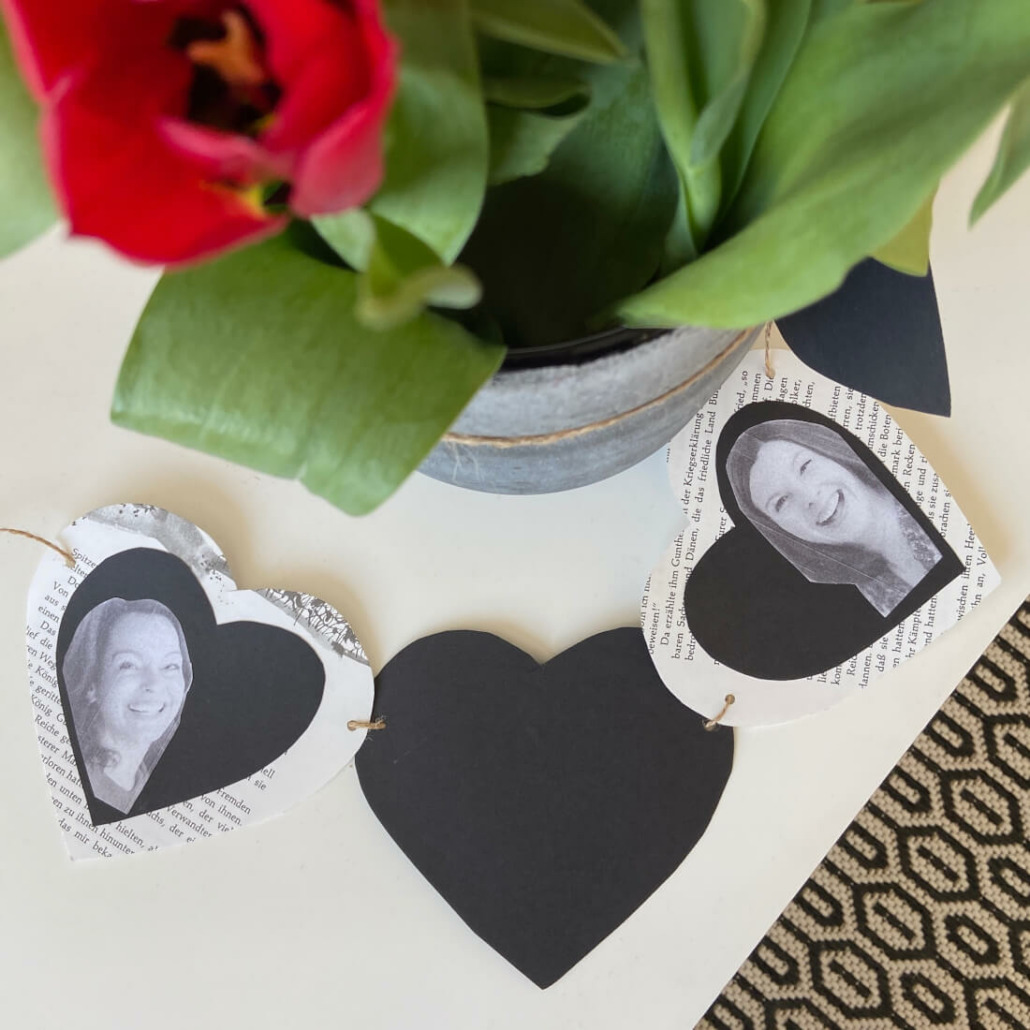 Herzen gehören für uns zu einem Hab Dich Lieb Tag wie Girlanden zu einer Party. Deshalb haben wir in unserem Hab Dich Lieb Abenteuer beides miteinander kombiniert. Ihr könnt entweder alte Fotos in die Herzen kleben oder ihr klebt nach dem HDL-Tag die schönsten Fotos vom Tag in die Herzen. Wenn ihr das jedes Jahr macht, wird eure Girlande immer länger 🙂