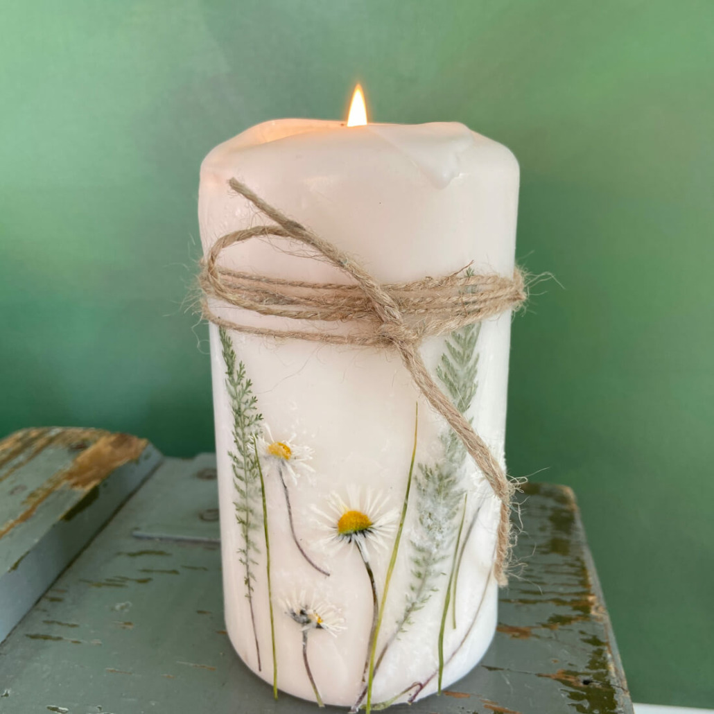 Diese wunderschöne Kerze ist die perfekte Kombi aus Blumen und Kerze. Außerdem ist sie ganz einfach und ruckzuck fertig. Fun Fact: Gänseblümchen haben für Linda eine ganz besondere Bedeutung. Denn: An dem Tag, an dem Linda geboren wurde, blühten die Gänseblümchen auf der Wiese vor dem Fenster. Was ist daran besonders? Naja… Linda hat Ende Dezember Geburtstag 😉