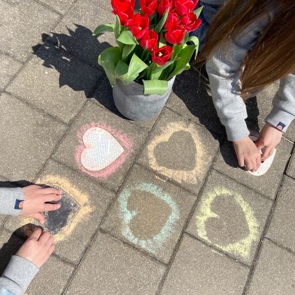 Oder ihr macht die Übergabe der Geschenke etwas spannender mit einer herzigen Kreidespur. Am Ende der Spur wartet eine schöne Überraschung auf eure(n) Lieblingsmenschen.