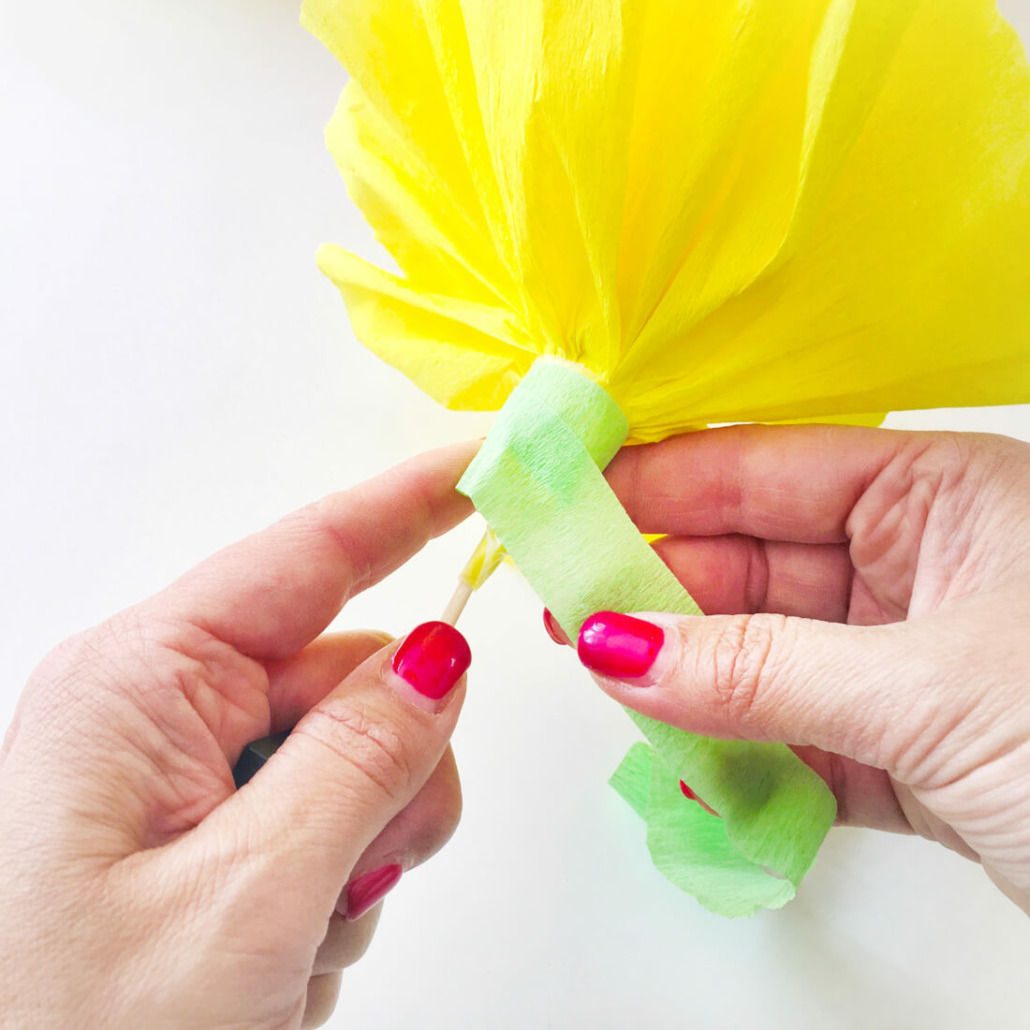 Du brauchst: Schaschlikstäbe, Krepppapier & Klebeband