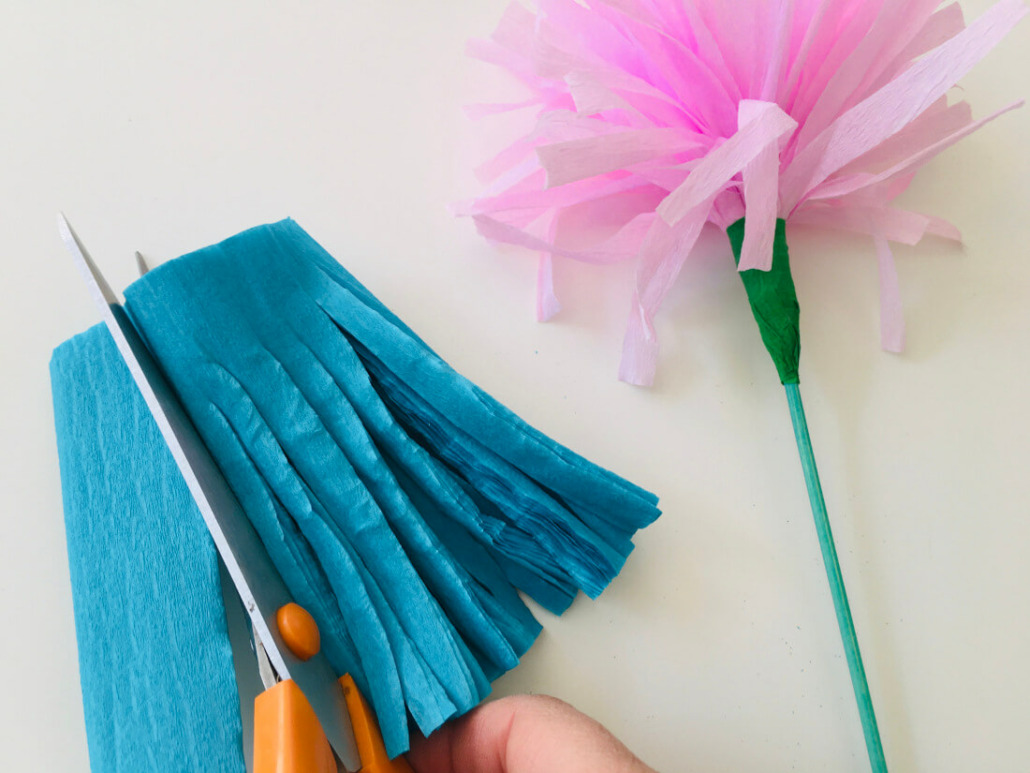Krepppapier einschneiden (-> für Wuschelblumen) oder nicht