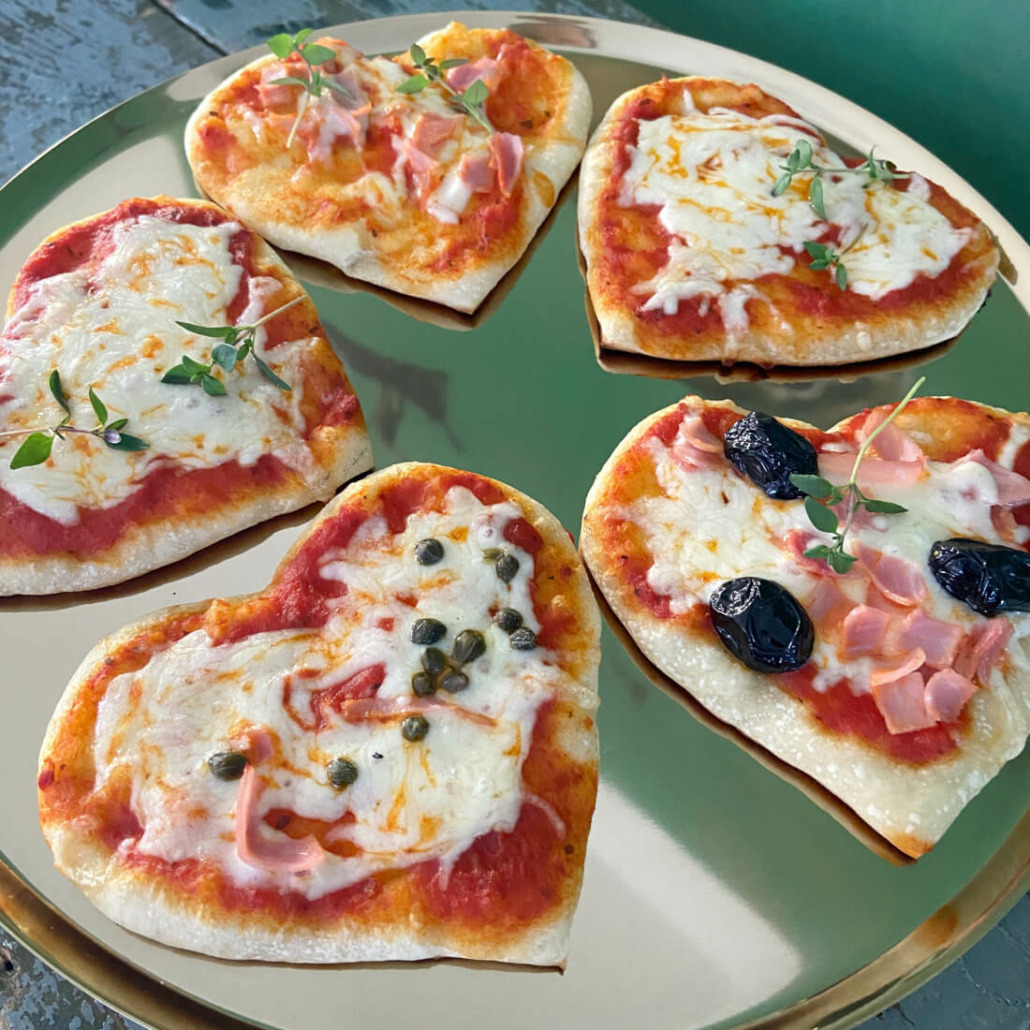 Ein wunderbarer Hab Dich Lieb Tag geht zu Ende. Mhhh… irgendwas fehlt doch noch. Aber was? Ja klar: PIZZA! Als Vorlage für die Pizzen haben wir übrigens die großen Herz-Druckvorlagen aus dem HDL-Abenteuer genommen… die für die Girlande 😉