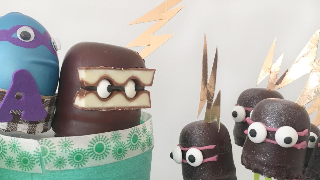 Unsere beiden Freunde Sascha (= Schokokuss) und Alex (Ei) sind bei uns bei jeder Party am Start… natürlich auch beim Motto Superhelden. Da konnten die beiden irgendwie ganz sie selbst sein 😉