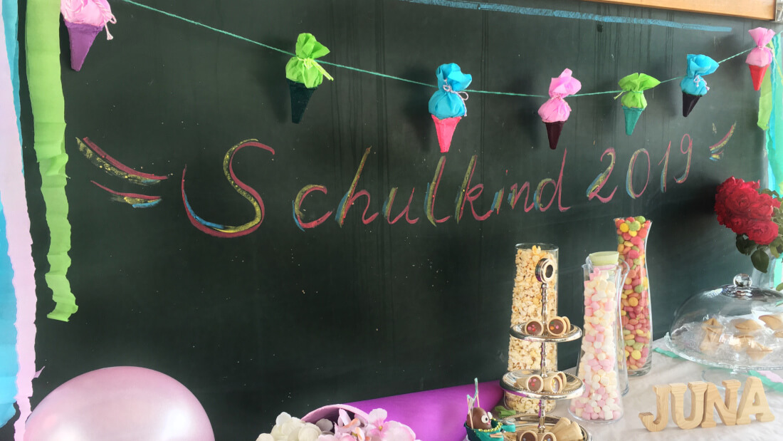 Der Ablauf der eigentlichen Einschulung ist von Schule zu Schule sehr unterschiedlich. Einige Schulen geben sich viel Mühe, andere machen eher das Sparflammen-Program. Unser Tipp: Verlasst euch nicht darauf, dass die Schule dafür sorgt, dass der erste Schultag für euer Kind zu einem ganz besonderen Erlebnis wird. Wenn ihr selber ein paar Highlights in der Hinterhand habt, seid ihr auf der sicheren Seite. Lindas Große hat ihre Einschulung damals mit ihren Eltern, den Paten und Großeltern gefeiert. Außerdem durften befreundete Kinder und Nachbarn jederzeit vorbeikommen und mitfeiern. Die Feier war zu Hause in lockerer Atmosphäre und ist allen in schöner Erinnerung.