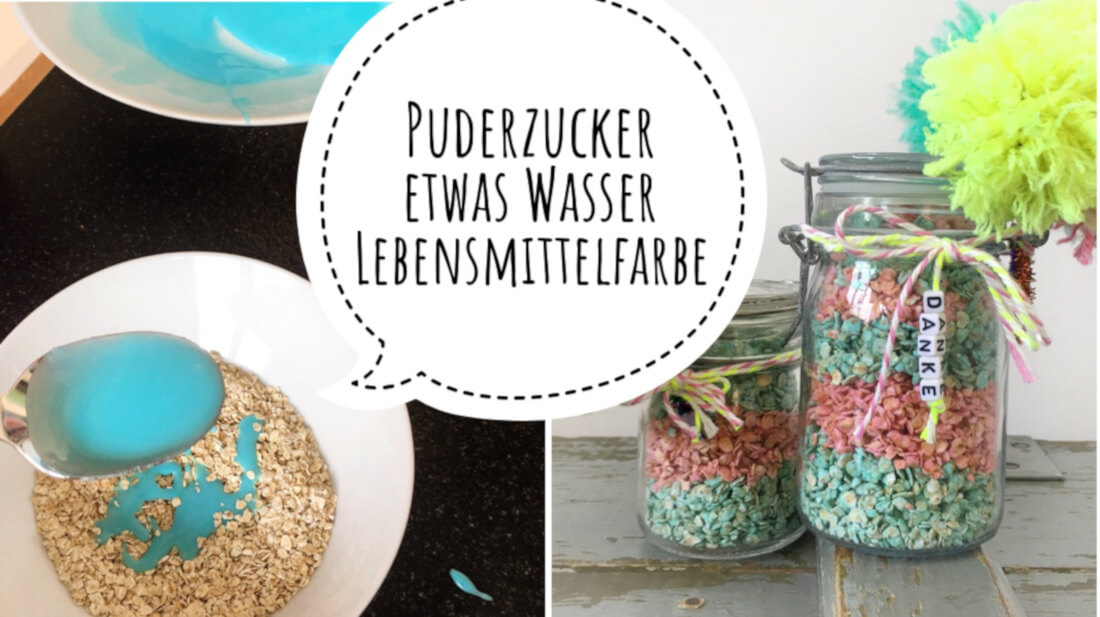 Ganz am Anfang vom Video habt ihr bestimmt die hübschen Gläser mit den bunten Haferflocken bemerkt. Die sind ein nettes Dankeschön und ein Hingucker in jedem Küchenregal.