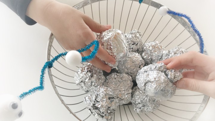 SCHRITT 3: Ü-EIER IN MONDSTEINE VERWANDELN Zum Schluss wickelst du jedes Ü-Ei in Alufolie ein und legst alle fertigen Mondsteine in eine große Schüssel oder in eine Box. Dann kann es losgehen.