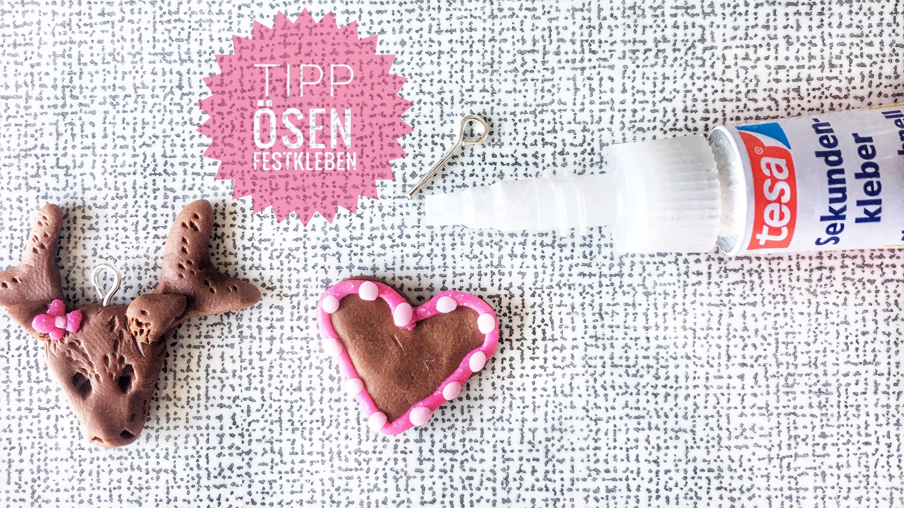 Wenn deine Anhänger fertig gepimpt sind, kommen sie für 30 Minuten bei 110 Grad in den Backofen. Tipp: Ich empfehle dir, die Ösen nach dem Abkühlen zur Sicherheit mit Sekundenkleber zu fixieren. Sicher ist sicher… es wäre ja sehr schade, wenn einer deiner hübschen Anhänger verloren ginge.