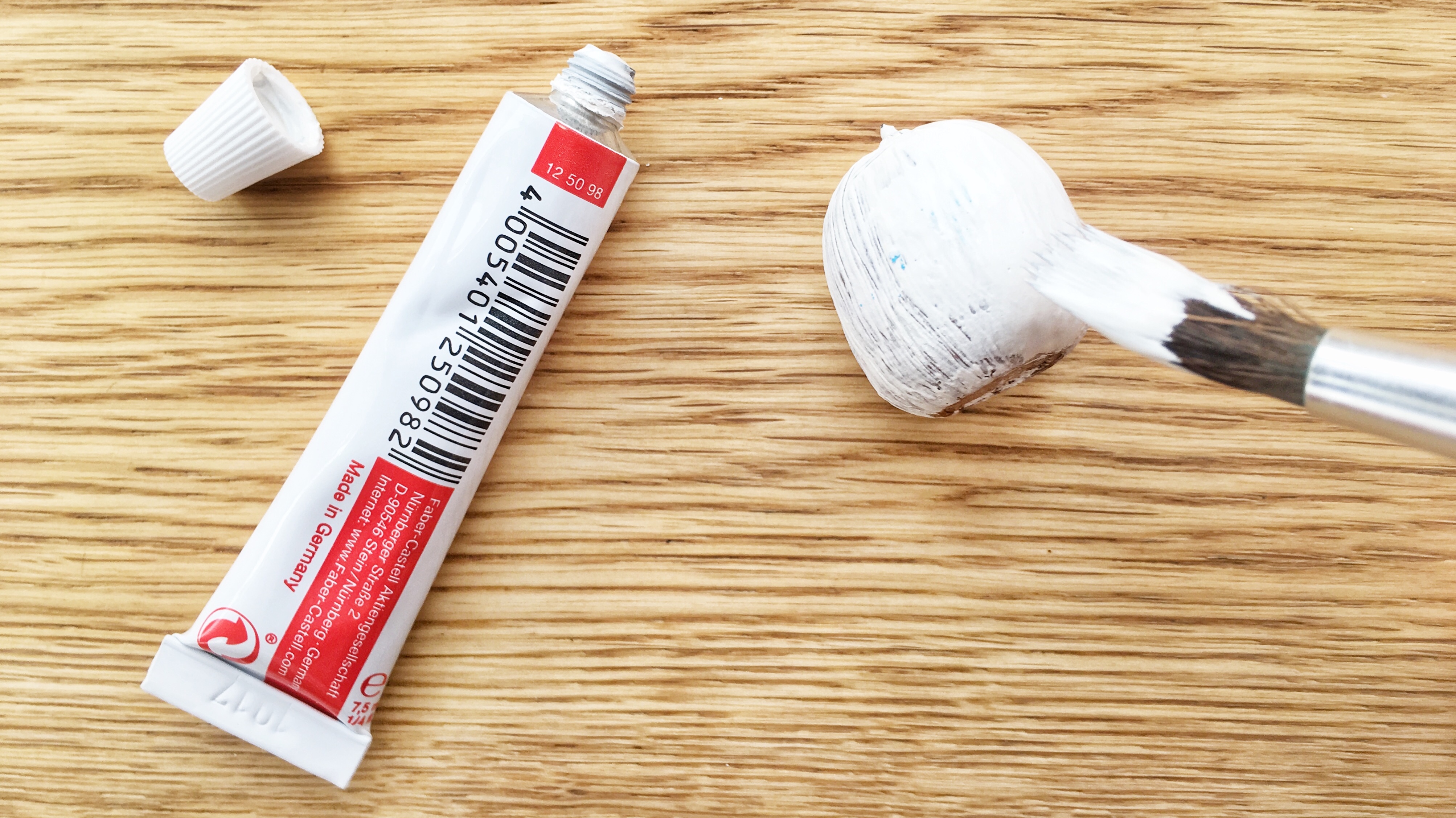 Schritt 1: Eichelfrucht mit Deckweiß bemalen